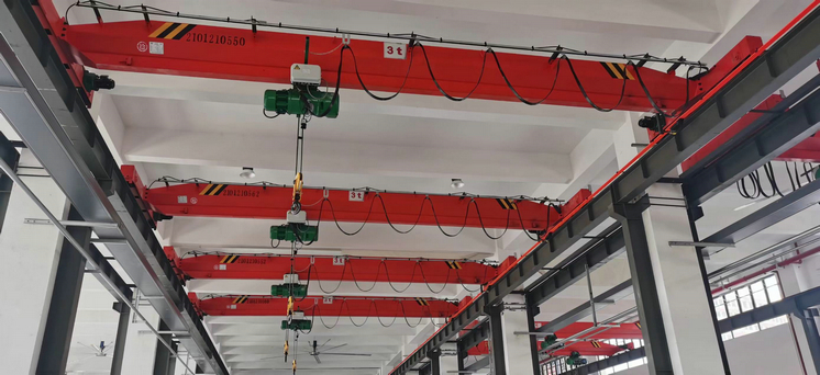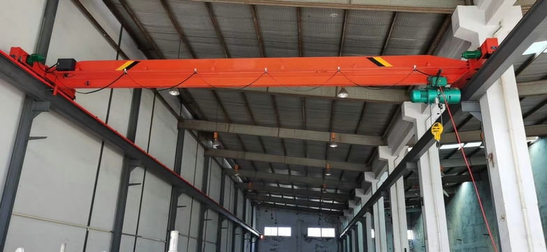 电动单梁起重机由钢板与工字钢组焊成的主梁、端梁、电动葫芦及运行机构组成,电动葫芦沿主梁工字钢下翼缘运行,完成物品的吊运工作,具有结构轻巧、安装维护方便等特点,广泛应用于工厂、仓库、料场等不同场合吊运货物,禁止在易燃、易爆、腐蚀性介质环境中使用。工作级别为A3-A5。操作方式设有地面手柄、无线遥控和司机室三种操作形式。驾驶室有开式、闭式两种。大车运行采用分别驱动形式,锥型电机制动,开式齿轮传动。