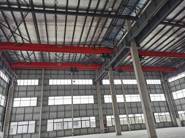 电动单梁起重机由钢板与工字钢组焊成的主梁、端梁、电动葫芦及运行机构组成,电动葫芦沿主梁工字钢下翼缘运行,完成物品的吊运工作,具有结构轻巧、安装维护方便等特点,广泛应用于工厂、仓库、料场等不同场合吊运货物,禁止在易燃、易爆、腐蚀性介质环境中使用。工作级别为A3-A5。操作方式设有地面手柄、无线遥控和司机室三种操作形式。驾驶室有开式、闭式两种。大车运行采用分别驱动形式,锥型电机制动,开式齿轮传动。