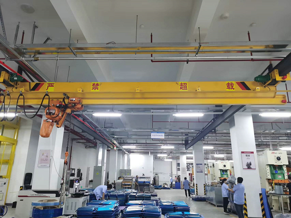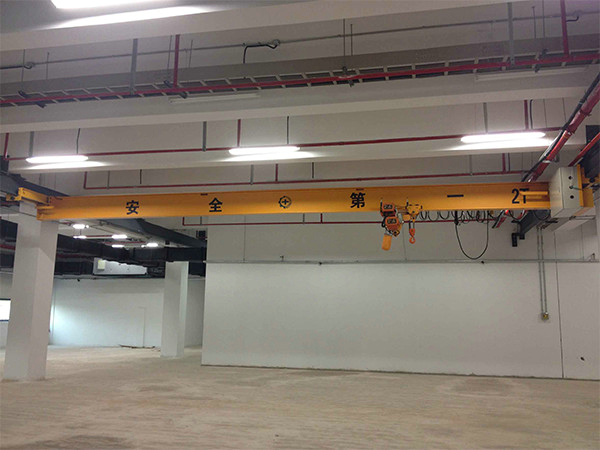 电动单梁悬挂起重机由钢板与工字钢组焊成的主梁、端梁、电动葫芦及电动跑车组成,悬挂在厂房上部的工字梁轨道上,悬臂长度0.5~1m,电动葫芦沿主梁工字钢下翼缘运行,完成物品的吊运工作,具有结构轻巧、安装维护方便等特点,广泛应用于生产车间、仓库及货场等场所。工作级别为A3-A5。